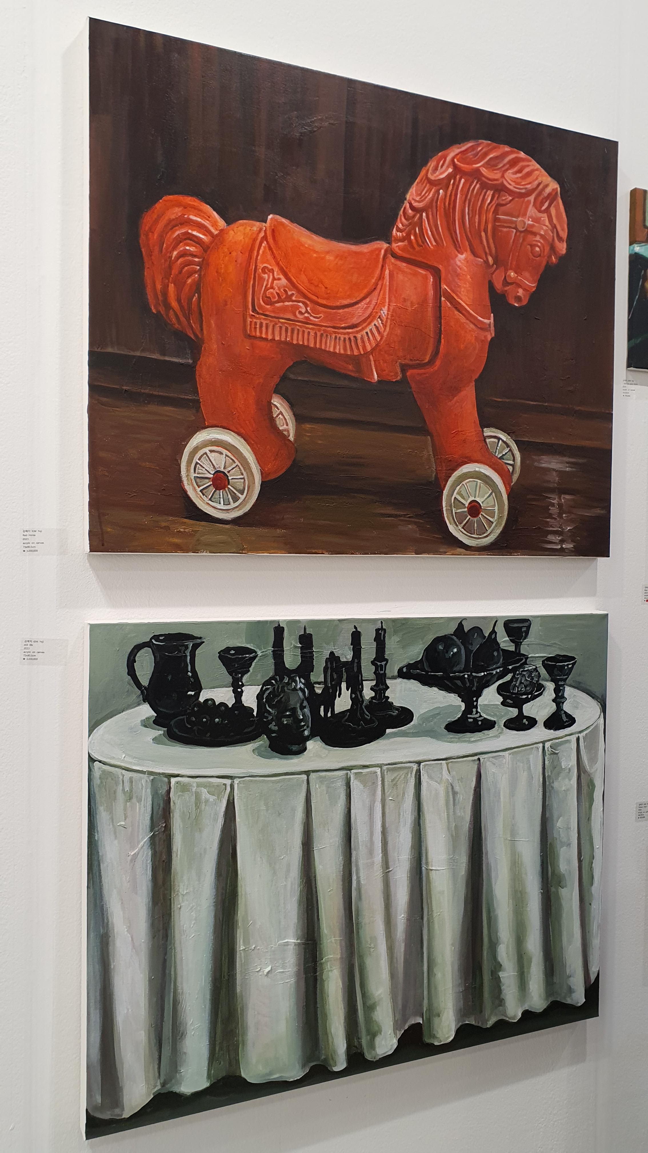 2년 만에 tkg plus 부스에서 다시 만난 chen ching yuan. 새로운 Night Walking 시리즈가 너무 좋아서 D홀로 넘어갔다가 이 작품을 보러 C홀에 다시 왔다. 갤러리스트는 이 시리즈가 술을 많이 마시고 담배도 많이 피우는 파티에 갔다가 혼자 일하는 사람들을 포착한, 그들의 옷에 비친 밤의 조명들을 그려낸 거라고 했다. 나가기 전에도 다시 부스 찾아가서 한참 봤네. 갤러리스트님한테 이 작가님 너무 좋아한다고 고백했다.